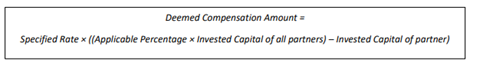 The deemed compensation amount with respect to any API for any partnership taxable year is the product of the "specified rate" multiplied by an amount equal to the "applicable percentage" of the weighted average of "invested capital" of all partners of the partnership over the weighted average invested capital with respect to the API at each "measurement date."