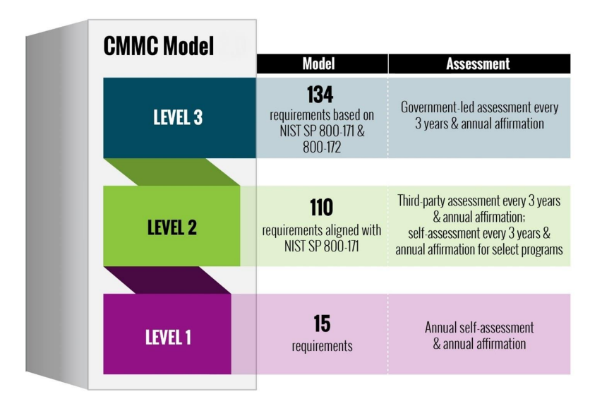 Three levels of the Cybersecurity Maturity Model Certification