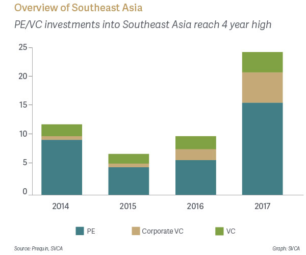 In Southeast Asia (SEA) alone, the region experienced a bumper year for both PE and VC investments, and grew almost three times to reach $23.5 billion in 2017.