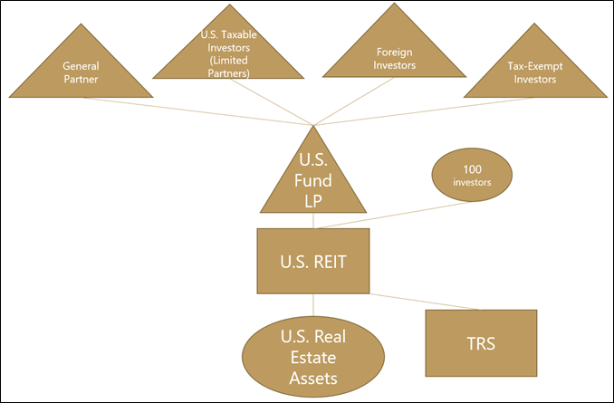 An example of a REIT structure within a real estate private equity fund is presented in the following organizational chart: