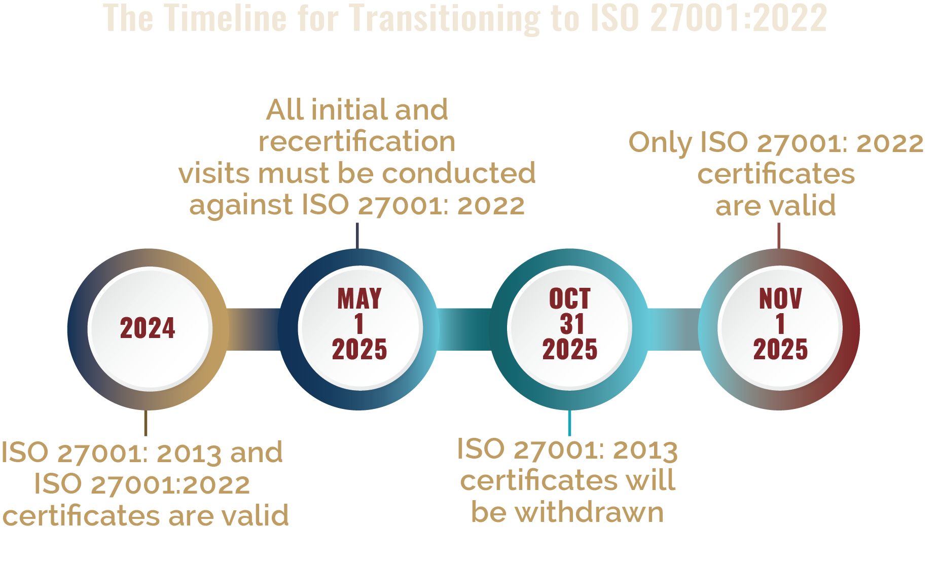All organizations must transition from ISO 27001:2013 to ISO 27001:2022 before October 31, 2025. Now is the time to plan your approach. EisnerAmper professionals can help you navigate these changes and address certification requirements. Contact us below to discuss your next steps.