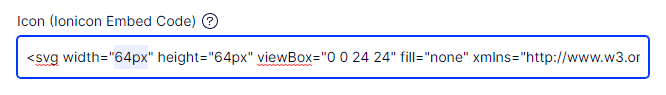 - Paste the SVG code into the “Icon (Ionicon Embed Code)” field and publish.